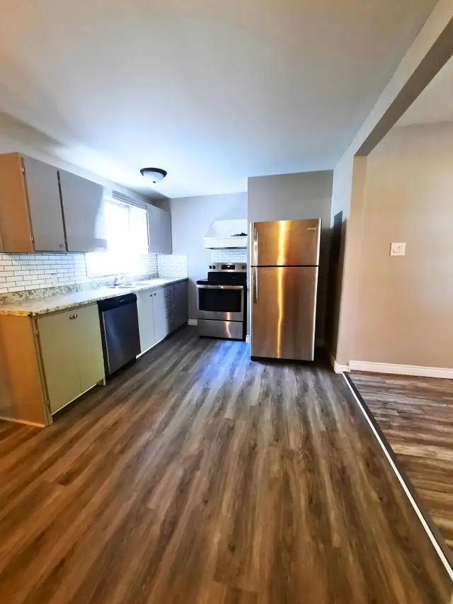 Chef-Ready: Spacious kitchen with fridge, stove, and dishwasher included.
