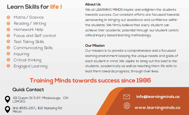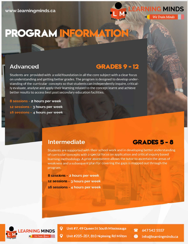 Learning Minds is a premier institute in Mississauga with 30 years of experience in the arena of high school education (English Public, English Catholic and IB).