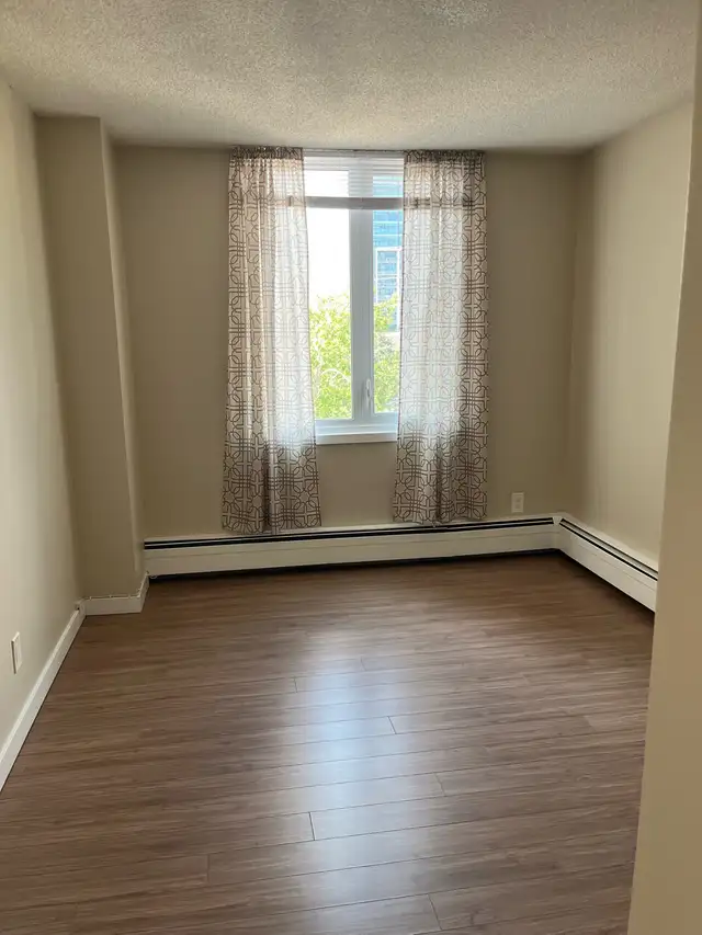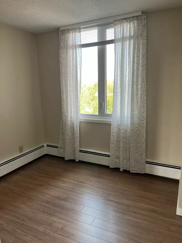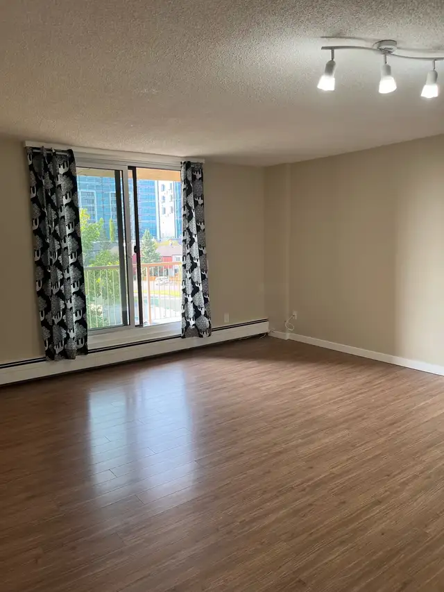 Apartment is freshly painted with laminated wood flooring, in suite storage. Large balcony.