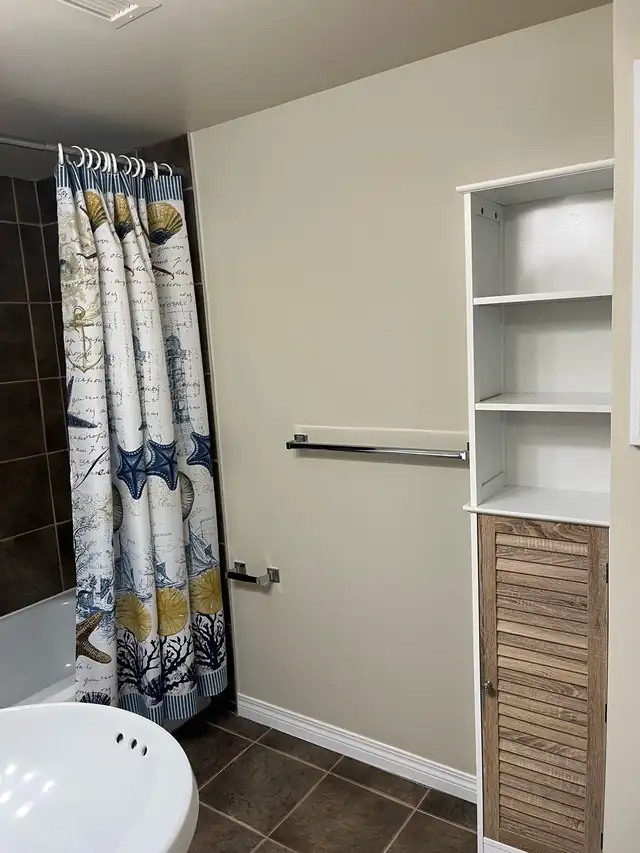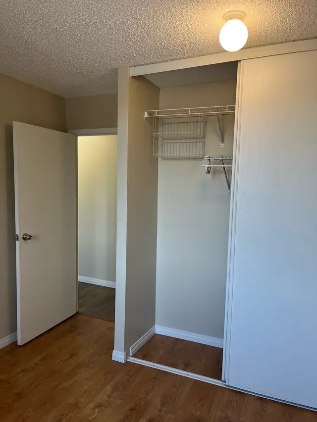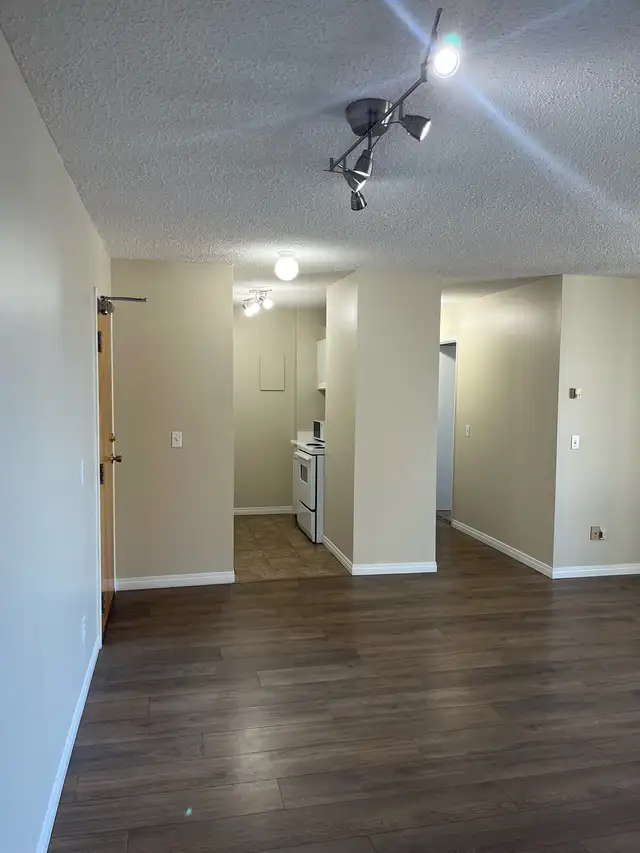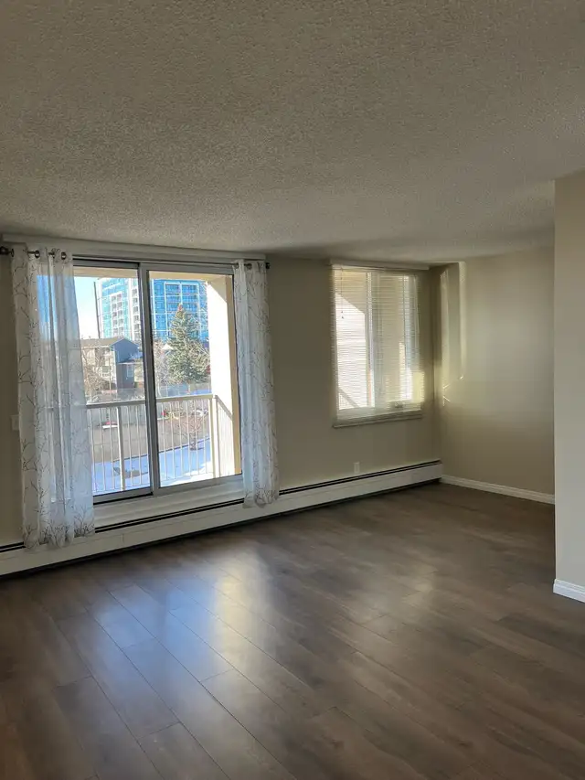 Apartment is freshly painted with laminated wood flooring, in suite storage. Large balcony.