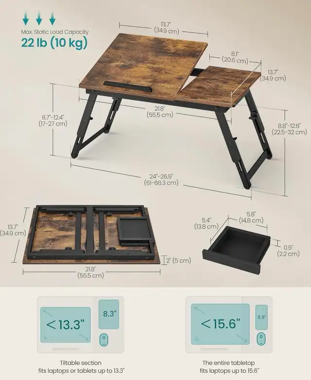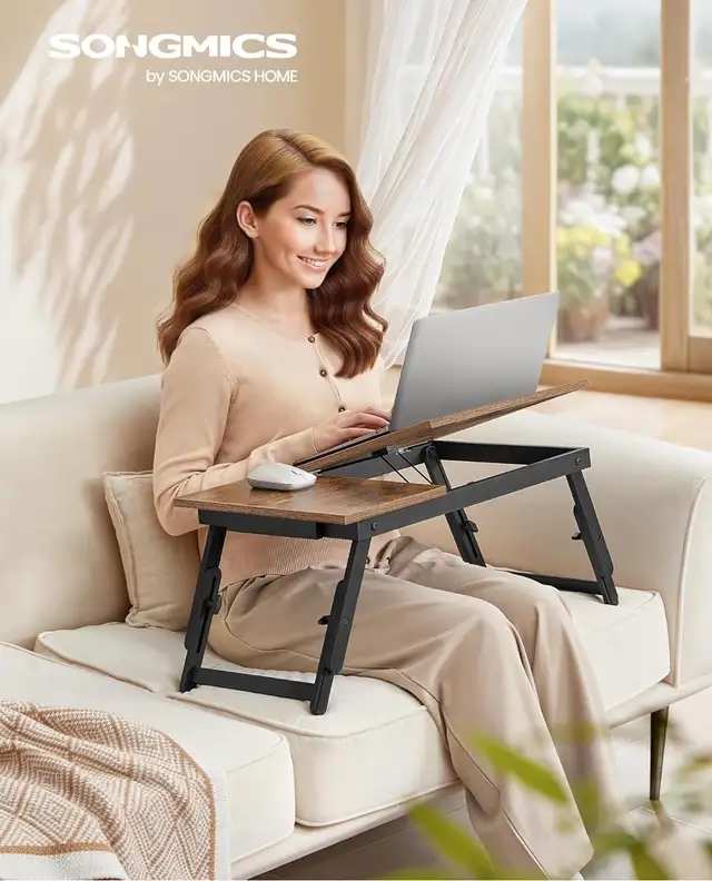 SONGMICS Adjustable Laptop Bed Tray – Rustic Brown