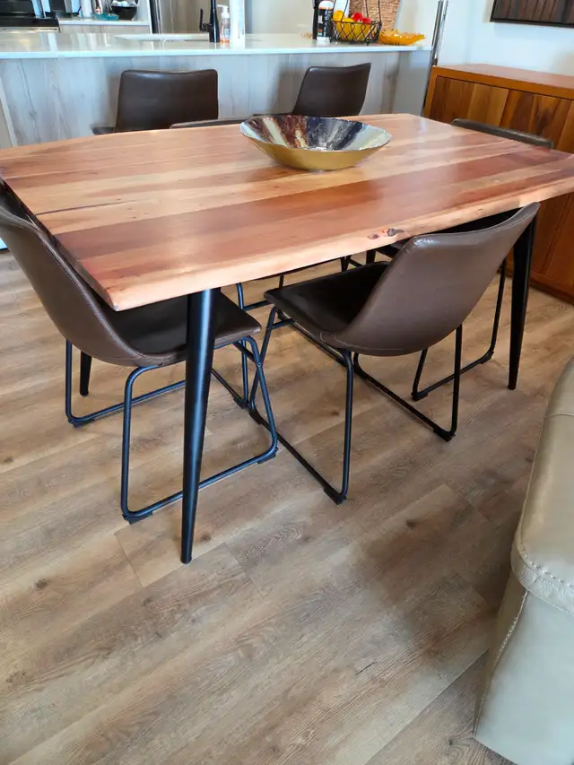 Acacia Wood Dining Table and Chairs with Matching Counter Stools. Pickup in Niverville, Manitoba. Clean non smoking home.