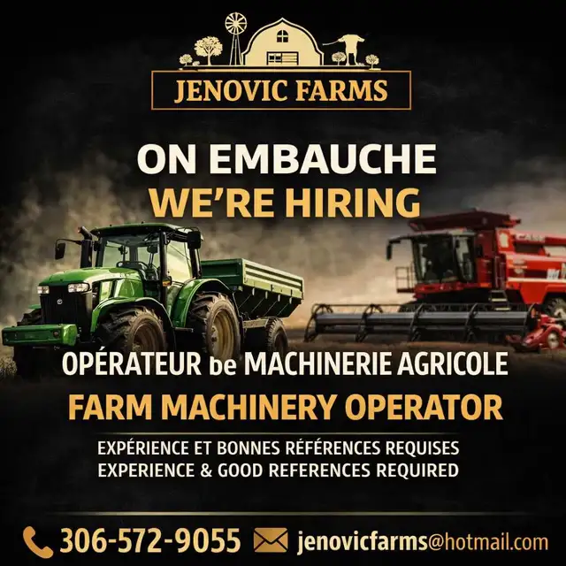 Jenovic Farms est à la recherche d'une personne fiable et motivée pour se joindre à notre équipe sur la ferme familiale.