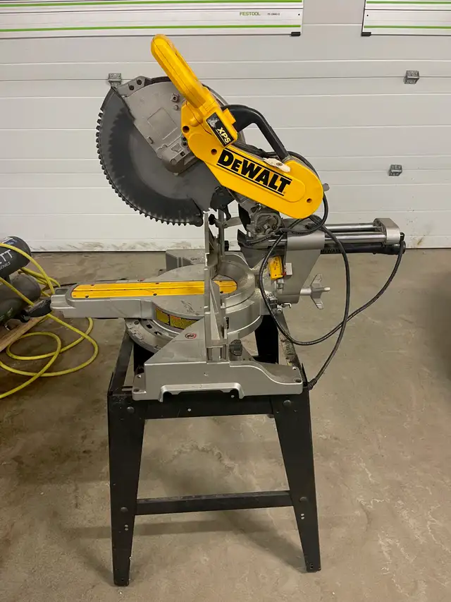 Dewalt 12 inch dual bevel slider with stand and 1 like new blade. Excellent shape. Just got motor bearings replaced at Athena repair, Priced for quick sale! Call or text Andy @ 204-781-7033. i will only return texts or calls please dont respond by email.