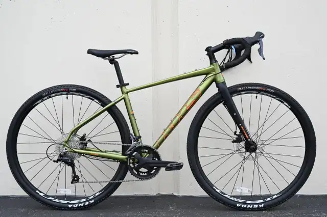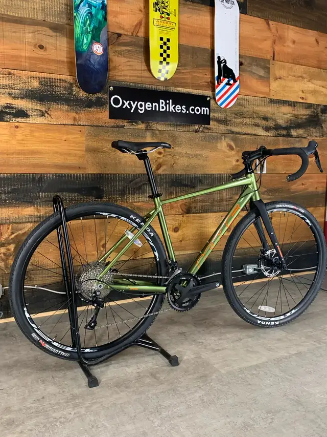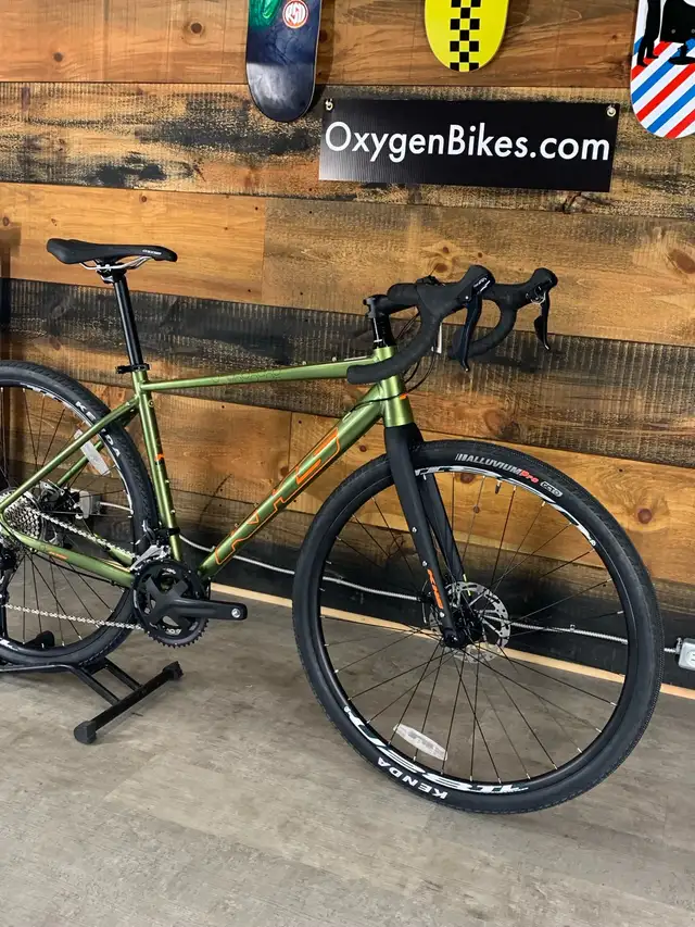 it. This is the KHS Grit 220 gravel bike. Alloy frame with Shimano components. If you are doing the Ride to Conquer Cancer or other charity rides, this is the ideal "first gravel bike". Or if you are just riding to work and don't want to lock up a $9000 road bike, this will get the job done. Sizes in this specific colour and price are MEDIUM and LARGE. Other bikes, models and prices are available....just ask.