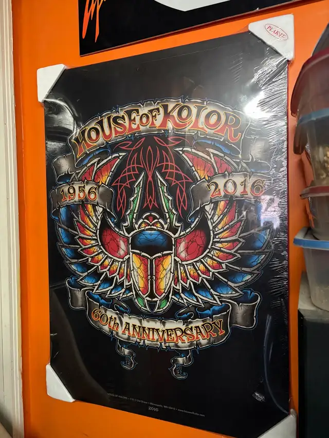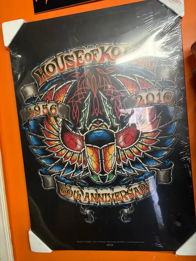 60 year anniversary poster from house of colour paints. Mounted on plaque so it's washable. Brand new still in wrapping. 125.00 Oshawa 905-626-4124