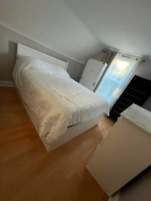 ROOM, Private, brand new, furnished, with a Queen bed and mattress, Bed covers, Sheets, Towels, Dresser, Side table, Storage Cabinet, Shoe cabinet, Desk, and Chair, all included in the room.