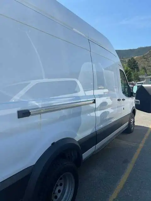 2018 Ford Transit 148" wheelbase extended body with high roof and 3500 diesel engine (dually). The largest van Ford makes. Base trim model, which includes backup camera.