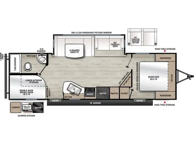 AURORA VALUE PACKAGE10 FT. SLIDEOUT WINDOW, PORCELAIN PEDESTAL TOILET, 12V 2 WAY MAXXAIR VENT FAN IN LIVING ROOM W/ WALL REMOTE, TRUNDLE SOFA IPO JACKKNIFE SOFA (PER FLOORPLAN), 360 SIPHON ROOF VENT, SKYLIGHT ABOVE TUB/SHOWER, BEDROOM USB & OUTLETS, 5/8in. TONGUE AND GROOVE FLOORING, ABS SHOWER/TUB SURROUND, LCI LADDER PREP.