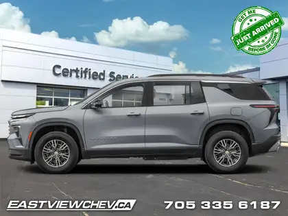 Wireless Charging, Heated Seats, Heated Steering Wheel, Power Liftgate, 360 Camera! With versatile cargo configurations and refined ride quality it adapts easily from school runs to weekend adventures. The 2026 Chevrolet Traverse offers generous space, advanced connectivity and refined comfort for drivers who need a capable three-row SUV without compromise. Its interior delivers intuitive tech, premium finishes and seating designed to keep everyone comfortable on every journey. Built to support both daily routines and spirited getaways, the Traverse provides a confident, versatile ride for families and active lifestyles alike. This Sterling Grey Metallic SUV has an Automatic transmission and is powered by a 328HP 2.5L 4 Cylinder Engine. Our Traverse's trim level is LT. Standard features in this Traverse LT include heated front seats with a heated steering wheel, remote engine start, an AutoSense power liftgate for rear cargo access, adaptive cruise control, a wireless charging pad, and an expansive 17.7-inch infotainment screen with inbuilt navigation, wireless Apple CarPlay and Android Auto, and SiriusXM. Safety features also include blind zone alert, lane keep assist with lane departure warning, HD surround vision, following distance indication and forward collision alert. This vehicle has been upgraded with the following features: Wireless Charging, Heated Seats, Heated Steering Wheel, Power Liftgate, 360 Camera, Remote Start, Adaptive Cruise Control. To apply right now for financing use this link: https://www.eastviewchev.ca/FinancePreQualForm 4.79% financing for 84 months. Buy this vehicle now for the lowest bi-weekly payment of $382.71 with $0 down for 84 months @ 4.79% APR O.A.C. (Complete pricing and payments may differ than advertised, depending on model, trim and options. ). Incentives expire 2026-03-31. See dealer for details. Includes: Environmental fees ($1.00) OMVIC Fee ($10.00) Tire Stewardship ($29.20).(HST), license & registration not included.Eastview Chevrolet is dedicated to making sure your experience is exciting, fun and enjoyable. We are located at 222 Government Rd. in Kapuskasing. We have hundreds of vehicle to choose from and will go out of our way to find you exactly what you are looking for. Call one of our professional staff to arrange your next test drive in a New Chevrolet, Buick or GMC vehicles. Call 705-335-6187. Come by and check out our fleet of 20 used cars and trucks and 80 new cars and trucks for sale in Kapuskasing. o~o