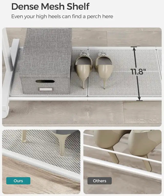 • Bottom Storage Shelf – Perfect for shoes, bins, or boxes (22 lb capacity)
