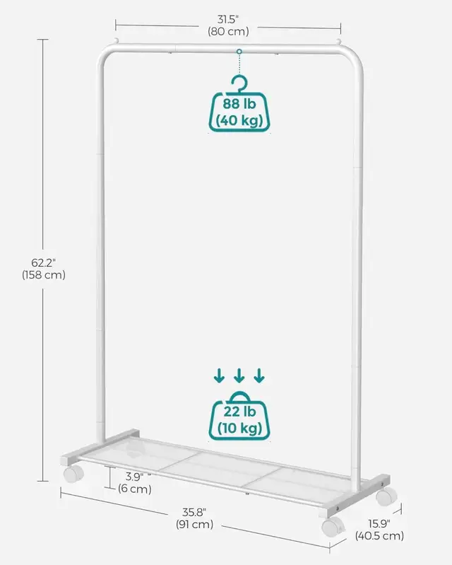 Designed for both mobility and durability, this rack easily handles everyday use while helping you stay organized.