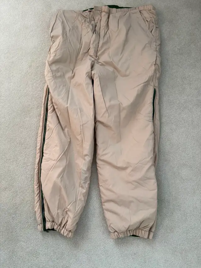 Very lightly used Snugpak Softie jacket and pants these have been in storage for the better part of a decade but still in phenomenal condition. Reversible olive drab and desert sand. Size Medium. Comes with compressor bag. Very light but warm, breathable, windproof lightweight jacket and pants.