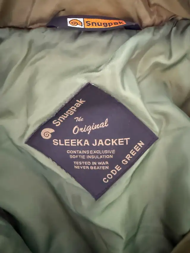 This is a very lightly used Snugpak Sleeka jacket in olive drab that looks brand new. Filled with Snugpak's Softie Insulation, Size XL. Adjustable elasticated drawstring at the collar and bottom of the jacket. Made from Paratex Light material, making it excellent thermal protection and is quick drying and lightweight.