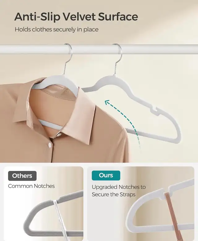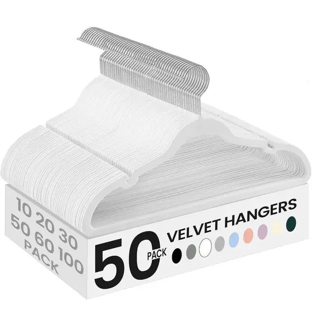 Velvet Non-Slip Hangers – 50 Pack (Slim Space-Saving Design)