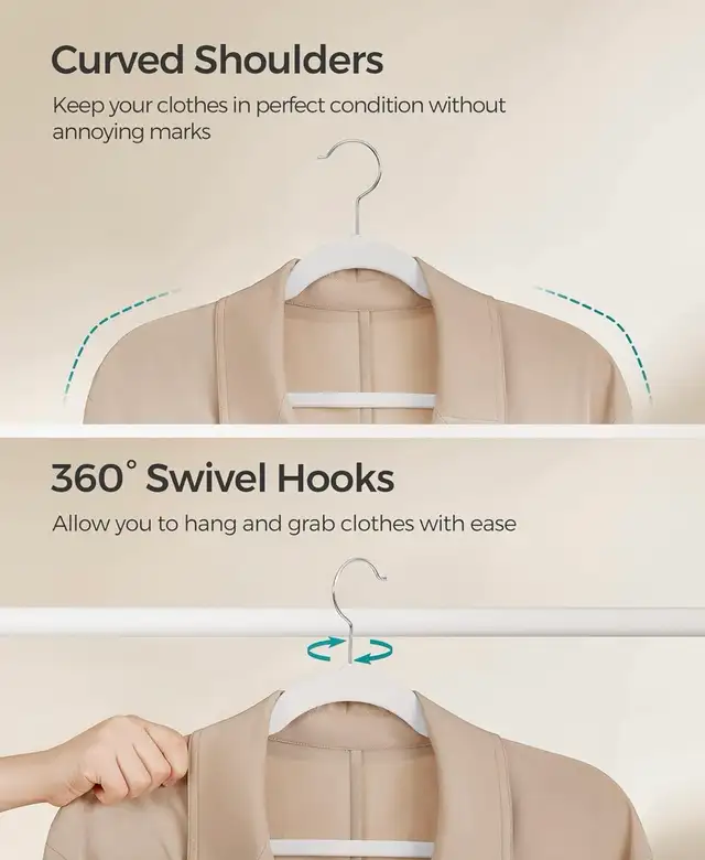 Upgrade your closet with these premium velvet hangers, designed to keep your clothes organized, protected, and wrinkle-free. With a slim profile and non-slip surface, they maximize space while securely holding everything from delicate tops to heavier garments.