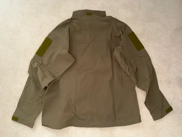 This is a discontinued gen 1 Arc'teryx LEAF combat jacket softshell in crocodile size extra large. Overall the condition is excellent with no abrasions or damage to the jacket. Garment material is- 46% polyester / 46% nylon / 8% Spandex. Very light softshell that can be used as an outside layer during the spring or a mid layer with a heavier parka on the outside.