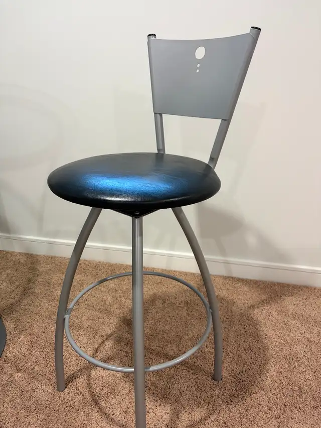 Round glass top no scratches, stainless steel type material, modern, sturdy metal with black leather seats. Barely used. Similar styles/quality sets selling for $800 willing to sell for $299. Need to pick up, please text or call me at 204-981-9842.
