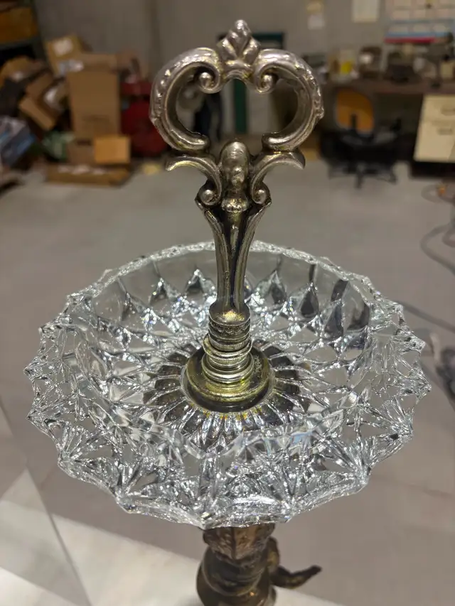 Approximate measurements: 28”H X 6”D X 6”W. Presented in very good overall condition (with minor wear consistent with age). Place some candies in the crystal bowl as an offering to your guests after dinner.