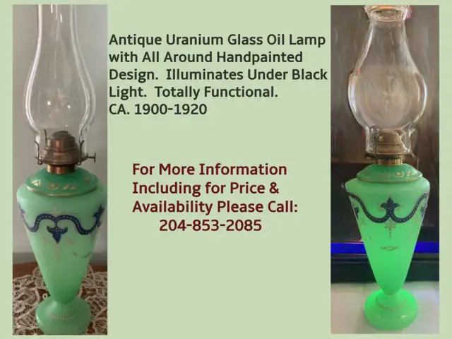 Antique Uranium Glass Antique Oil Lamp.