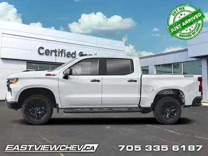 Off-Road Package, Trailering Package, Aluminum Wheels, Remote Start, Automatic Emergency Braking! A comprehensive suite of driver-assist and safety features helps provide confidence on every journey. The 2026 Chevrolet Silverado 1500 delivers full-size pickup performance with a polished interior and smart technology to meet the demands of both work and play. Inside youll find an interior designed for comfort and connectivity, outfitted with modern amenities and a layout that supports both productivity and leisure. With such versatility, the Silverado 1500 stands ready to take on the tough jobs and the long drives in equal fashion. This Summit White Crew Cab 4X4 pickup has an Automatic transmission and is powered by a 355HP 5.3L 8 Cylinder Engine. Our Silverado 1500's trim level is Custom Trail Boss. Standard features include off-road equipment including uprated shocks, skid plates and a heavy duty air filter, trailering package, remote start, aluminum wheels, hitch guidance, a power locking EZ lift tailgate, and a 7-inch infotainment display with Apple CarPlay and Android Auto. Safety features also include lane keep assist with lane departure warning, following distance indication, forward collision alert, and automatic emergency braking with front pedestrian braking. This vehicle has been upgraded with the following features: Off-Road Package, Trailering Package, Aluminum Wheels, Remote Start, Automatic Emergency Braking, Lane Keep Assist, Lane Departure Warning. To apply right now for financing use this link: https://www.eastviewchev.ca/FinancePreQualForm 0% financing for 72 months. 2.49% financing for 84 months. Buy this vehicle now for the lowest bi-weekly payment of $439.97 with $0 down for 84 months @ 2.49% APR O.A.C. (Complete pricing and payments may differ than advertised, depending on model, trim and options. ). Incentives expire 2026-03-31. See dealer for details. Includes: Environmental fees ($1.00) OMVIC Fee ($10.00) Tire Stewardship ($29.20).(HST), license & registration not included.Eastview Chevrolet is dedicated to making sure your experience is exciting, fun and enjoyable. We are located at 222 Government Rd. in Kapuskasing. We have hundreds of vehicle to choose from and will go out of our way to find you exactly what you are looking for. Call one of our professional staff to arrange your next test drive in a New Chevrolet, Buick or GMC vehicles. Call 705-335-6187. o~o