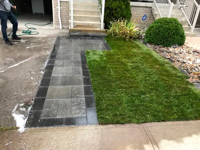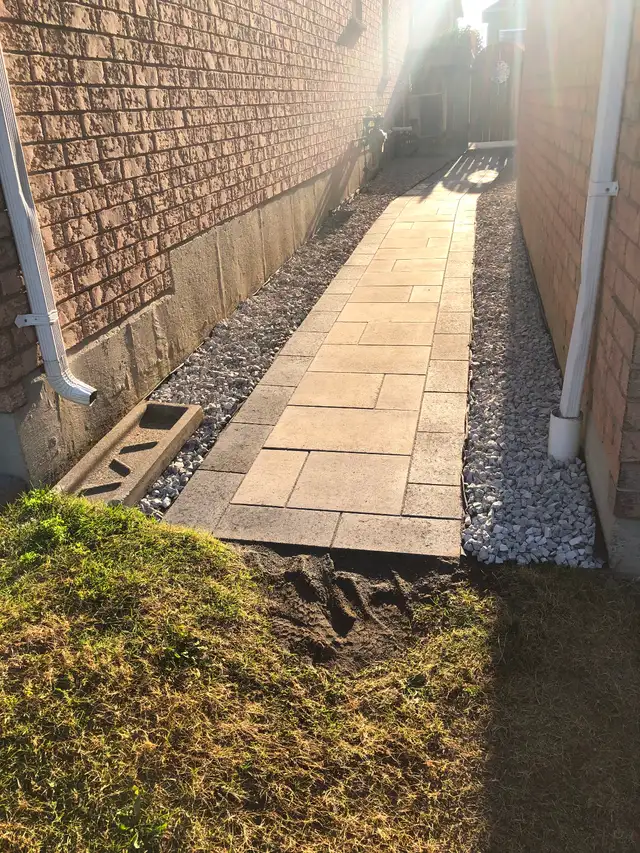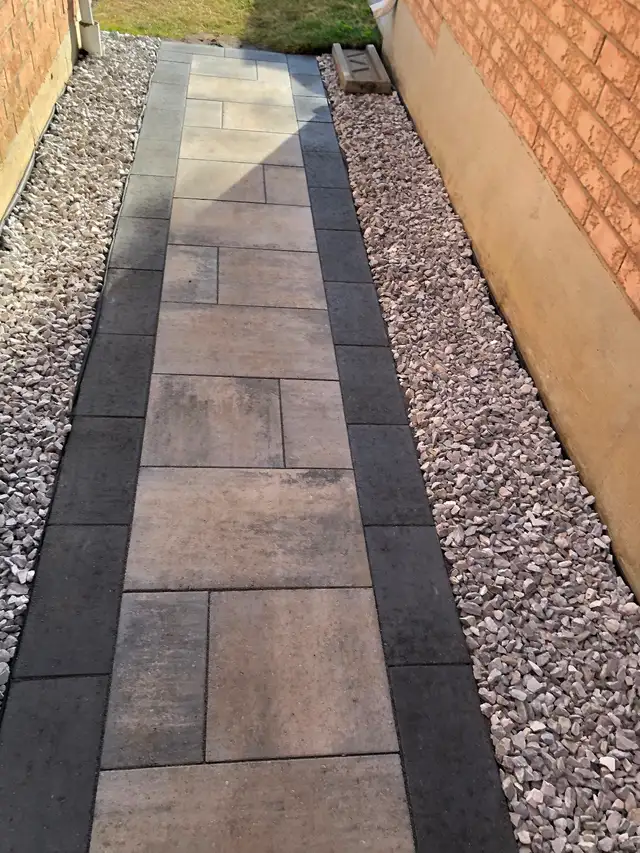 Hi we do interlocking Driveways and walkways- patios - Steps- Stairs- Garden walls - retaining walls - Slabs for cheap prices