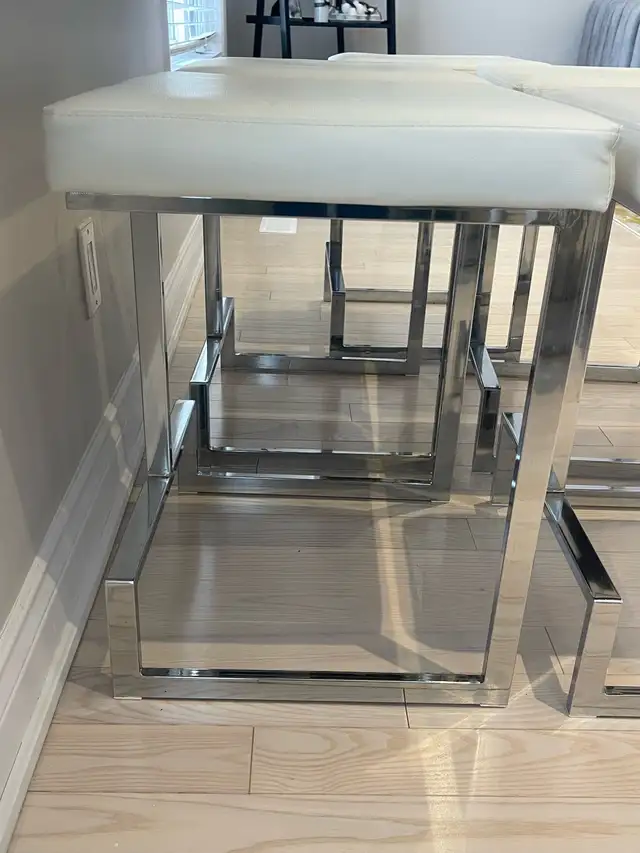 5 white faux leather bar stools for sale $250.