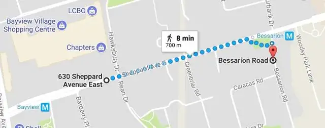 - At the corner of Bessarian TTC subway station, it takes 2 mins (120m) to walk to subway station.