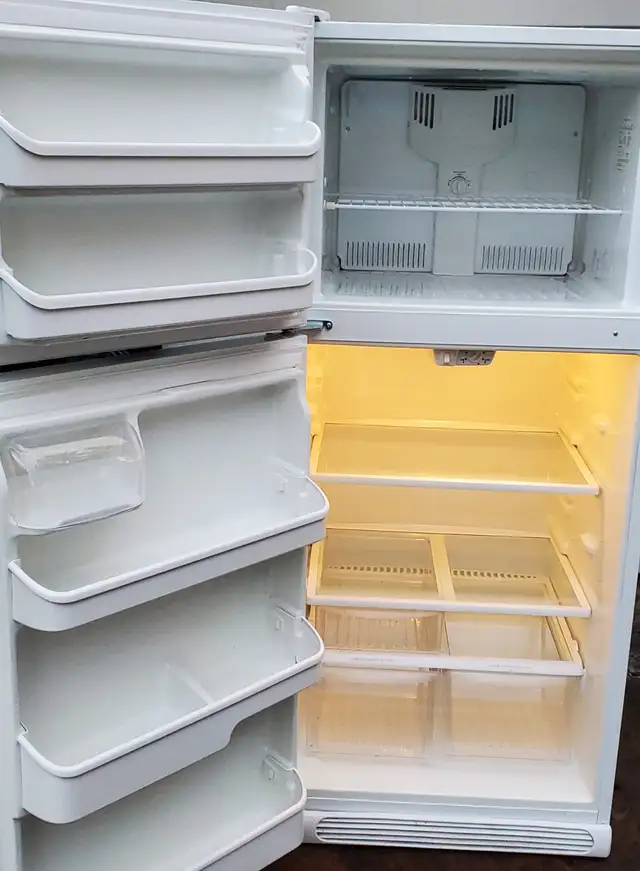 A good working Frigidaire mid-size fridge. Very good condition inside and out. Clean and ready to use. This fridge has nice glass shelving and is a mid size, easy to use. Runs cold and quiet. Perfect for any one, a extra fridge etc.