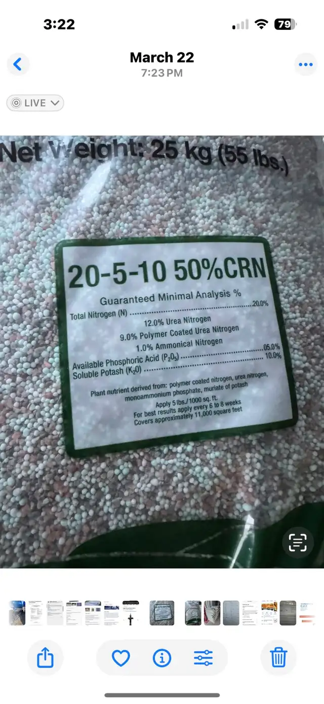 For sale 25 kg bags of Magic Carpet Fertilizer 20-5-10 with slow release nitrogen. $80
