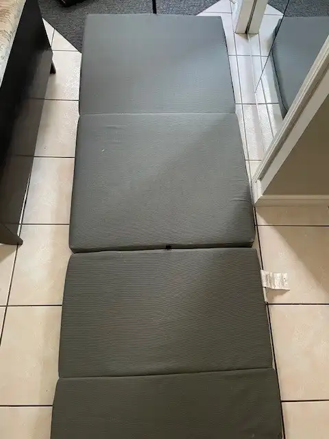 Take advantage of this fabulous opportunity. Ideal for a relaxing or unexpected guest, this folding thick mattress is in excellent shape, clean, and fits under the bed