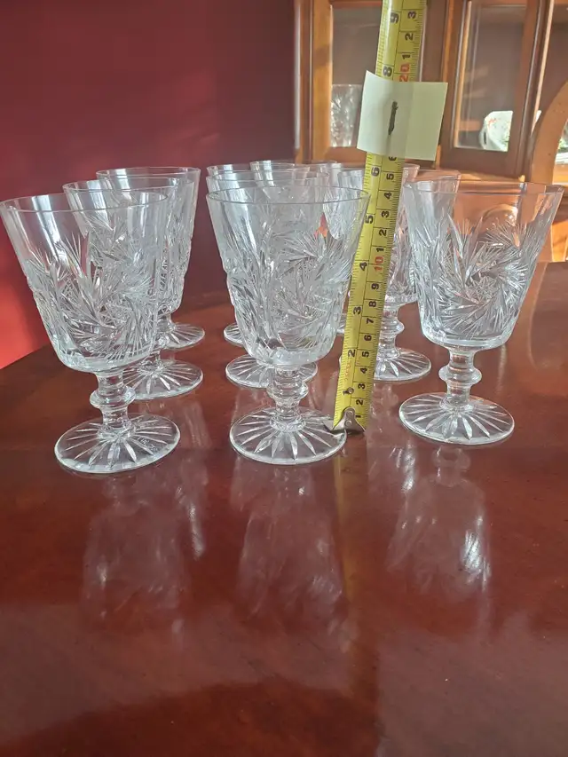 Vintage pinwheel crystal water or wine glasses (goblet style) made in Czechoslovakia in like new condition. These goblets are approximately 51/2 inches tall. All 10 for $10 total price.