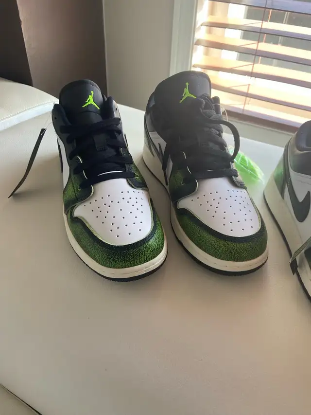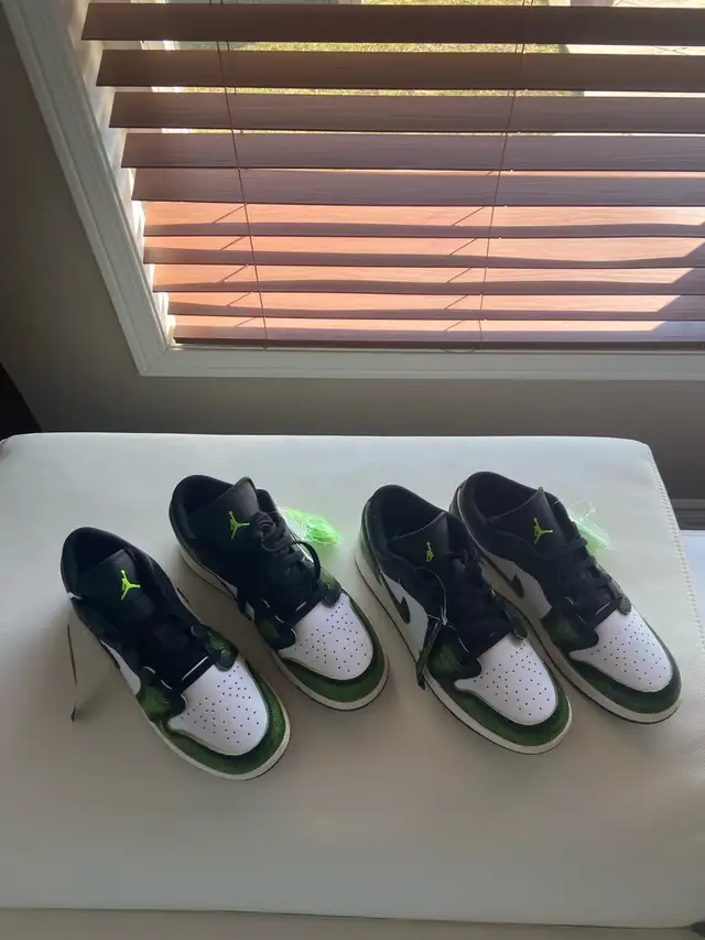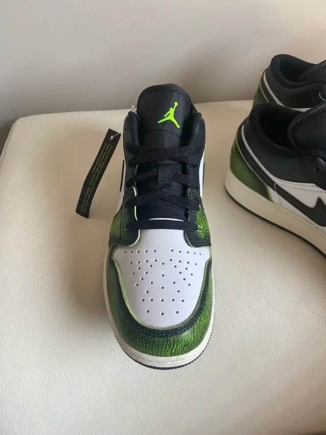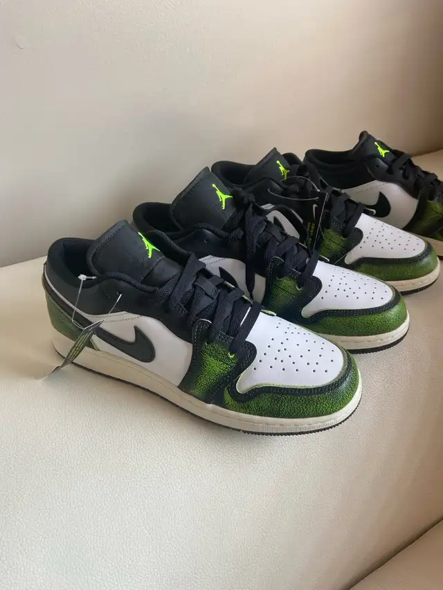 Step up your sneaker game with these authentic Nike Air Jordan 1 Low Electric Green sneakers! These shoes feature a striking electric green accent on a classic low-top silhouette. Brand new.