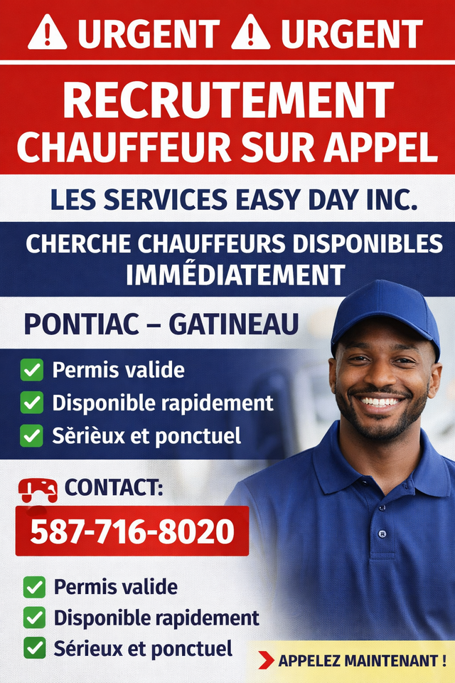 LES SERVICES EASY DAY INC. cherche chauffeurs disponibles immédiatement Pontiac – Gatineau