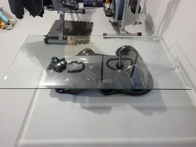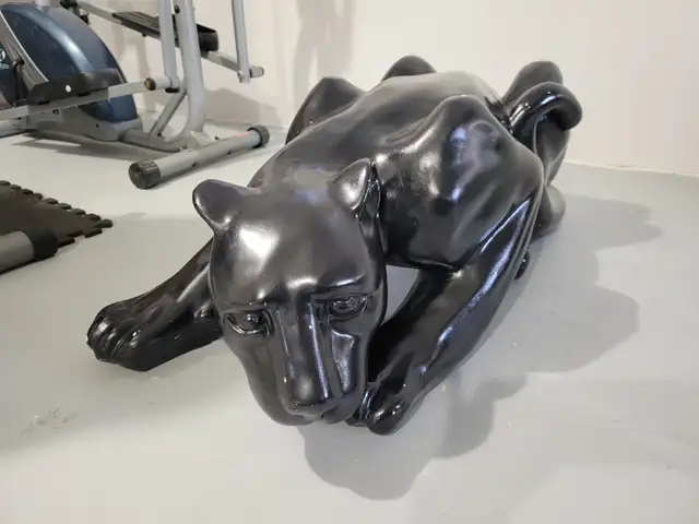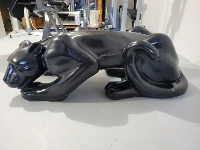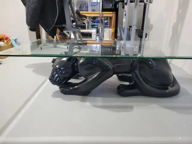Unique Black Panther coffee table with glass top measuring 26x52 inches. Very Good Condition asking $350.00. Please Text only 204-333-2181.
