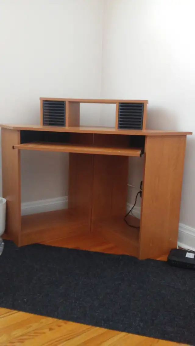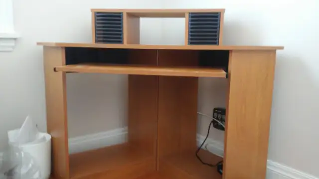 Corner computer desk for sale. Good condition. will need to be assembled, asking $50 obo. Please text 204-333-2181.