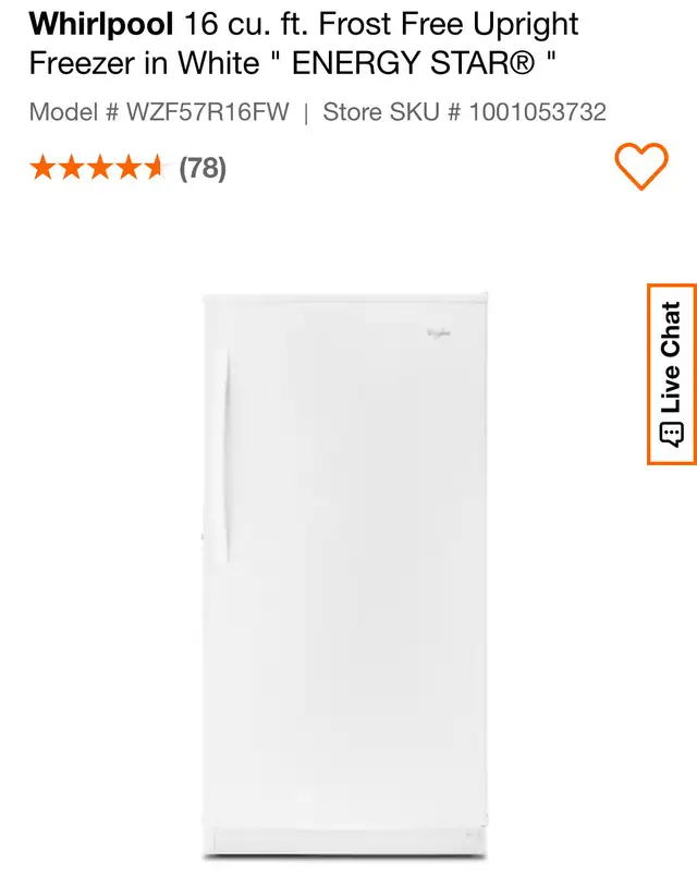 Upgrade your home's freezing capabilities with the Whirlpool WZF34X18DW Upright Freezer, a powerhouse of convenience and efficiency. Boasting a 30-inch width and an impressive 18.0 cubic feet capacity, this freezer is designed to cater to all your freezing needs. Let's explore the features that set it apart: