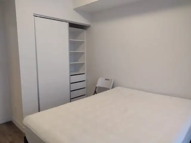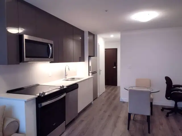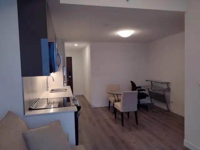 9 ft concrete ceiling and floor to ceiling window, 500 sq. ft. Modern kitchen with upgraded stylish finishes. Wooden floors throughout.