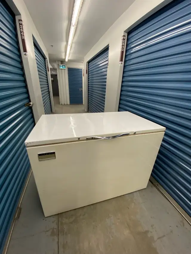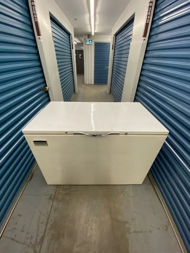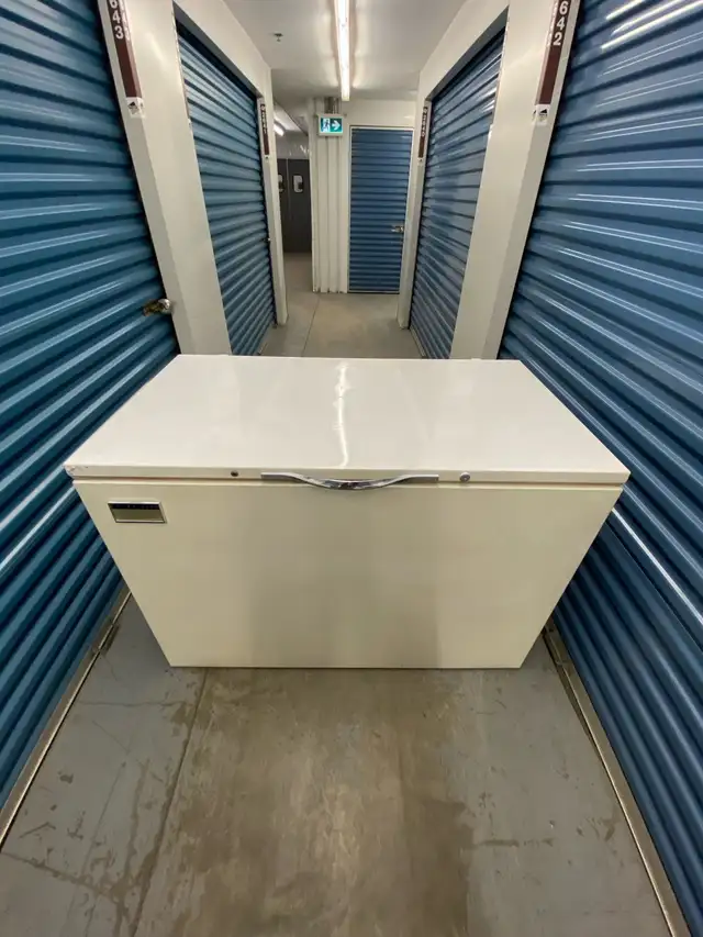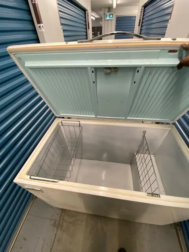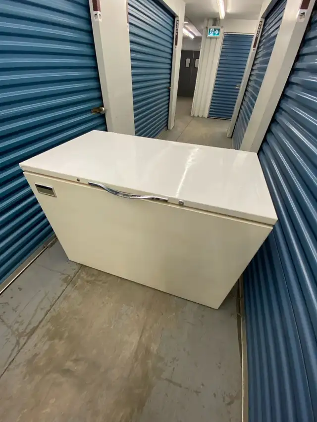 Clean and solid chest freezer available — wide design makes it easy to store a lot without digging deep.