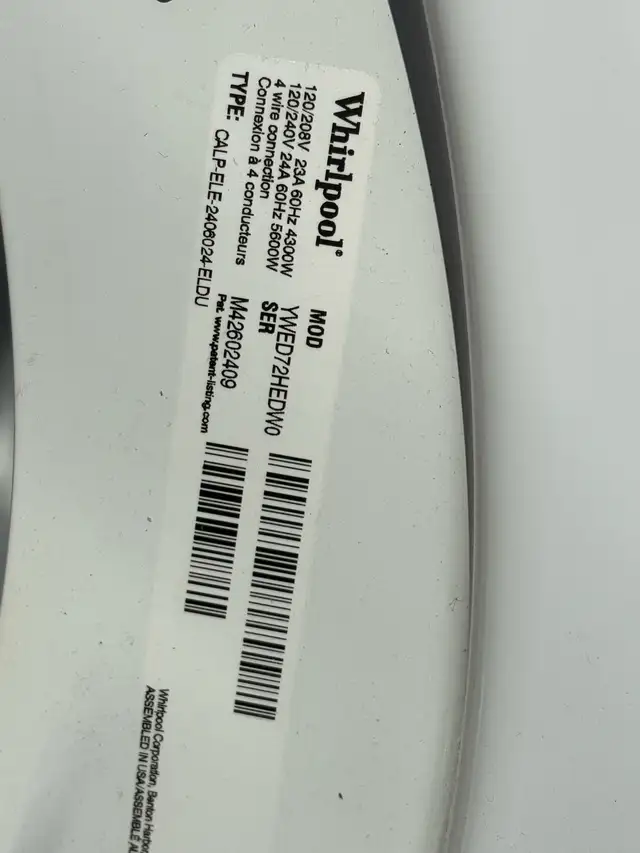 • Model YWED72HEDW0