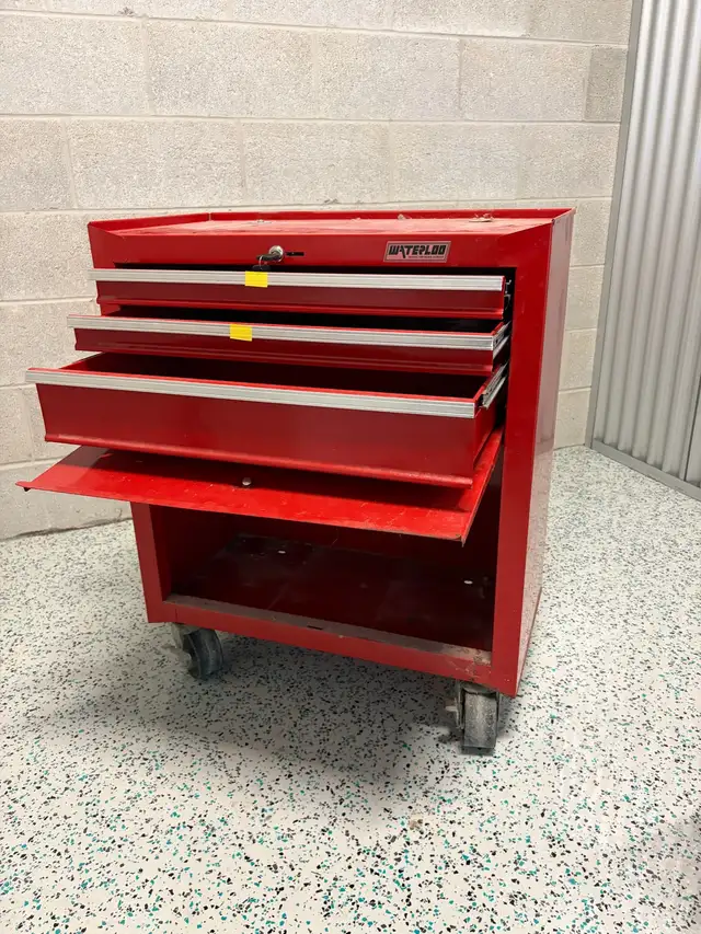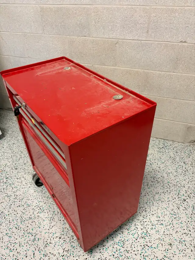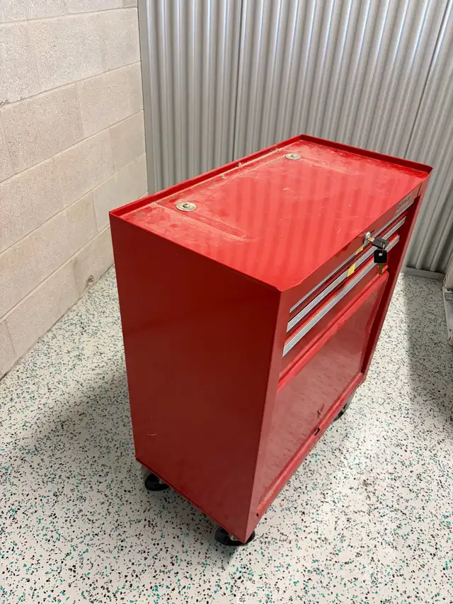 Solid steel tool cabinet in good working condition. Built strong — not cheap lightweight stuff.