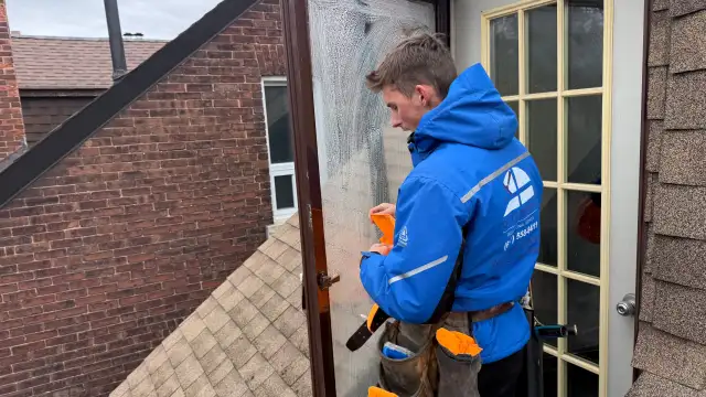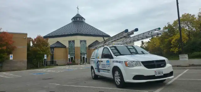 Window cleaning (any height), gutter and eavestrough cleaning, power washing, leaf guard installation, downspout repair, roof washing.