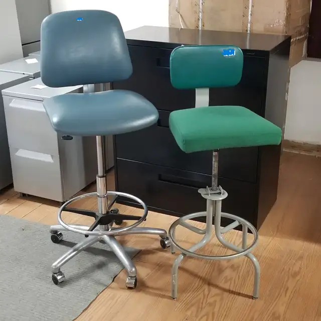 Description: Very well designed and constructed, comfortable vintage drafting chair with several adjustable features.
