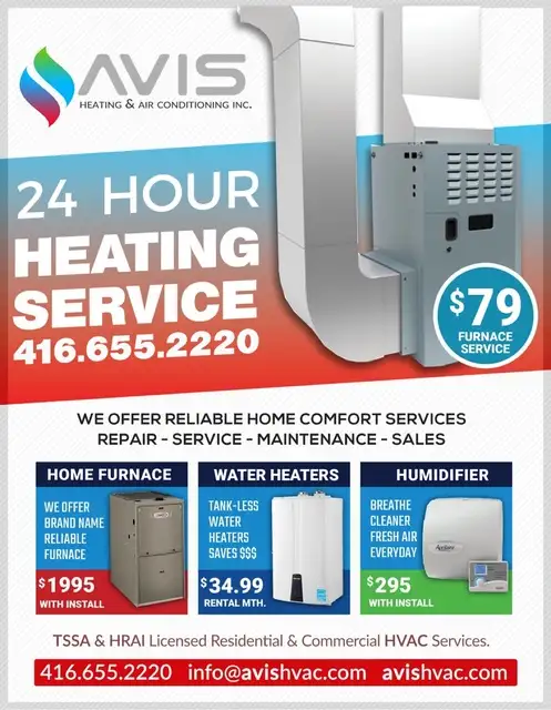 ,BRAND NEW FURNACE INSTALLED416-655-2220 AVIS HEATING SERVICE $59 AND 24 HOURAVIS HVACWe are fully licenced and certified with over 15 years experience helping customers with