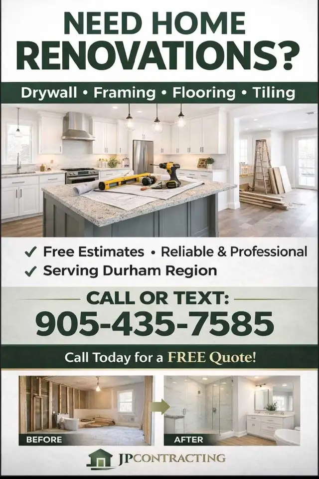 Jpcontracting serving Durham region. Quality work at a fair price call 905-435-7585 for a free quote today