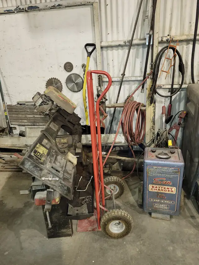TOOLS/EQUIPMENT/MISC. - Toolboxes and Tools, Metal Lathe and Tooling, Milling Machine, Welding Table, Welders, Generators, Air Compressor, Sandblast Cabinet, Power Hacksaw/Bandsaw, Cutoff Saw, Jacks and Jack Stands, Hand Trucks, Taping Cart, Creepers, Oxy/Act Torch Set w/Bottles, Drill Press, Angle and Bench Grinders, Valve Grinder, Test Tools, Hand and Electric Winches, Engine Shop Crane, Hit and Miss Engines, Engines and Parts, Steam Engine, 3-Phase Converter, Clamps, Porta Powers, Mini Parts, Electric Wiring, Parts Washer Tank, Steam Cleaner, Pressure Washer, Shop Manuals, Hydraulic Hoses, Chains and Cables, Cable and Chain Slings, Chain Cinches, Vices, Pullers, Hoses, Oils, Cleaners, Bolt Bins, Battery Chargers, Lockers, Plus More!!