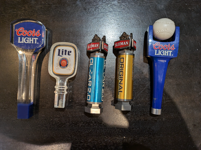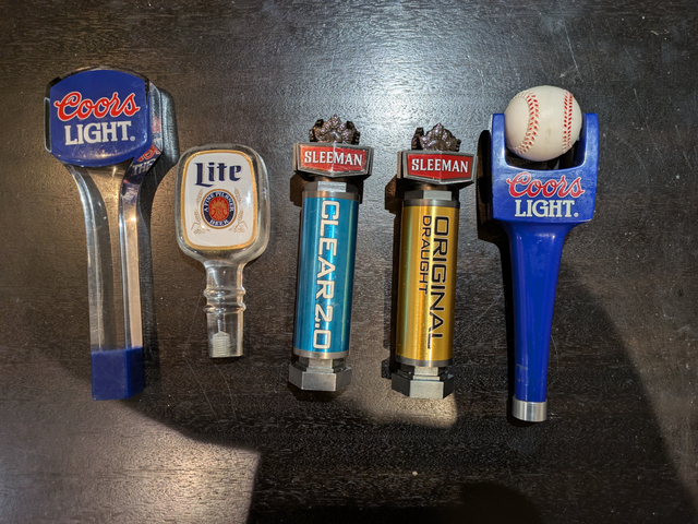 5 draught beer tap handles. Each is $15 or $50 for all 5. They were used but in good condition. Text 647-654-1582. Pick up 401/Whites Rd.