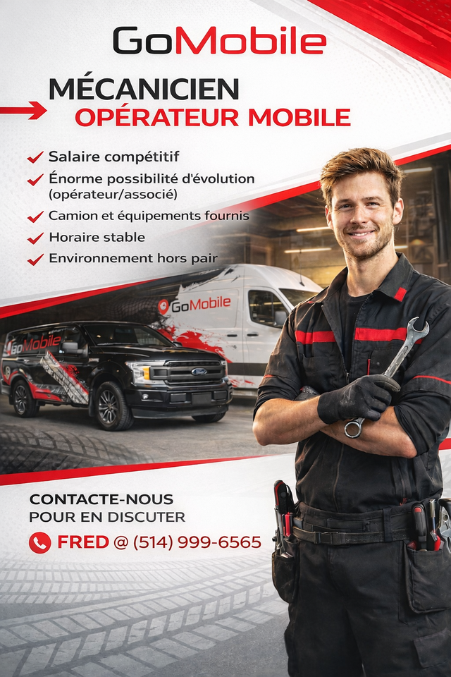 C'est la saison forte et GoMobile est en pleine expansion. On cherche un technicien fiable pour des quarts de semaine — à partir de maintenant.
