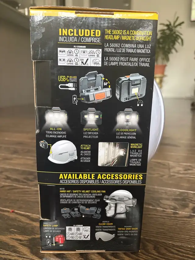 Brand new still in the box with a light included on the helmet. You can contact me here or you can message my phone number at 647-525-9715