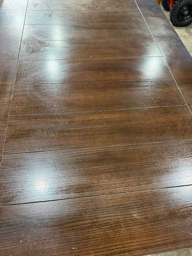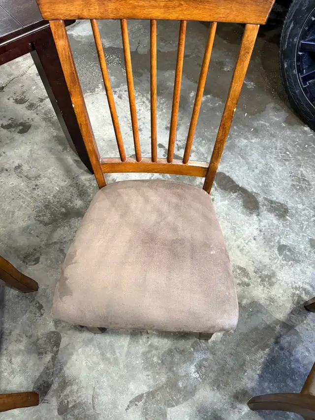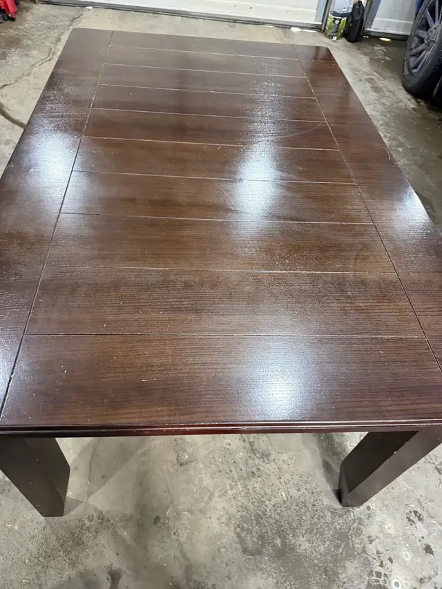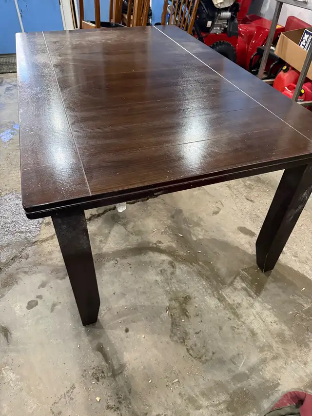 This is a solid wooden table very sturdy comes with 4 chairs it is 66” long and 42” wide first $175 takes it call 306-260-2214 thanks